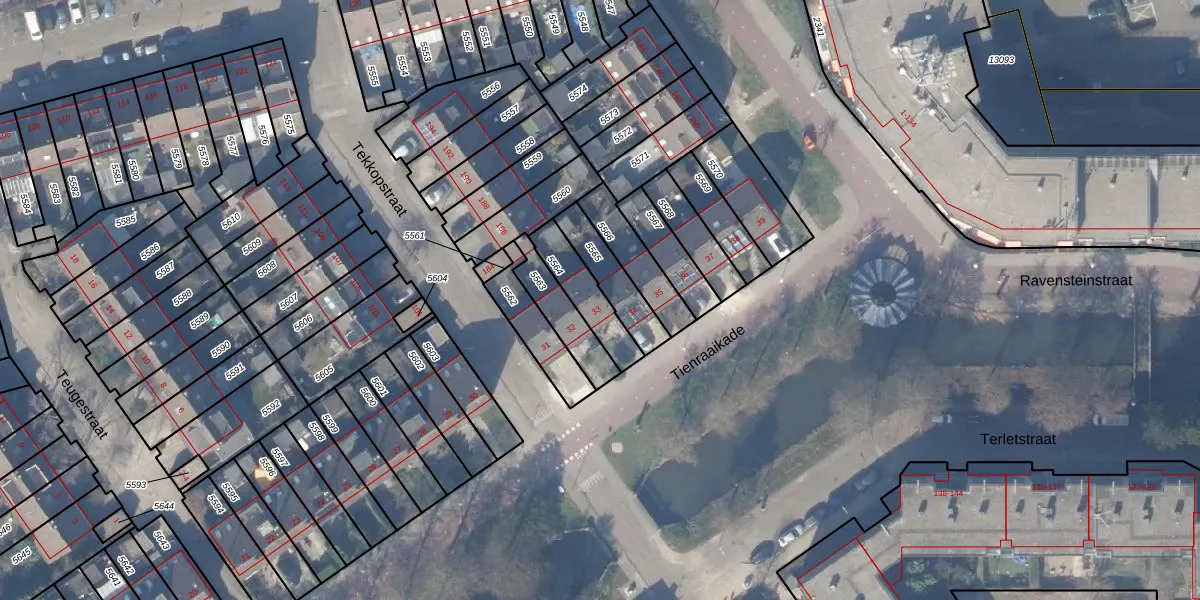 Gebruik de zoekbalk of klik op een perceel voor informatie over de adressen binnen dit perceel.