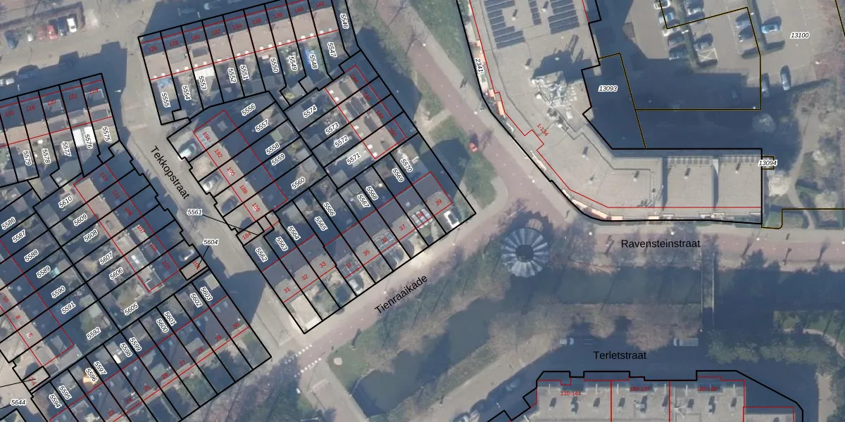 Het perceel waarop Tienraaikade 38 staat heeft een oppervlakte van 120 m². Dit is een middelgroot perceel. De perceeloppervlakte wordt geregistreerd door het Kadaster. Gedetailleerde informatie over de maten van dit perceel kunt u vinden in het rapport Kadastrale kaart met maatvoering van Tienraaikade 38.