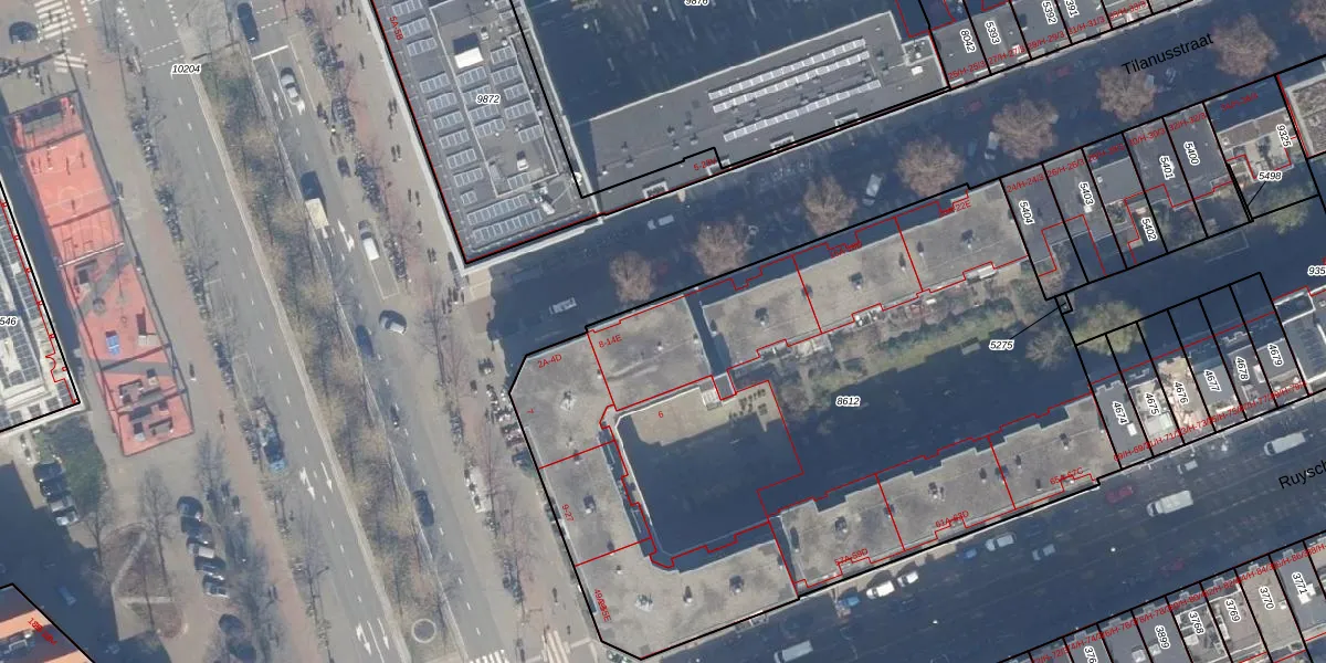 Het perceel waarop het adres ligt is ASD15-S-8612. De afkorting 'ASD15' staat voor kadastrale gemeente Amsterdam. Het perceel is met 4017 m² relatief groot. Het gemiddelde ligt in de kadastrale gemeente Amsterdam op 537,06 m². Het grootste perceel in de kadastrale gemeente is 14,5 ha. Het kleinste perceel heeft een oppervlakte van 0 m². Op het perceel liggen in totaal 93 adressen. De huidige grenzen van het perceel zijn digitaal in de Basisregistratie Kadaster (BRK) geregistreerd op 30-11-2006.
