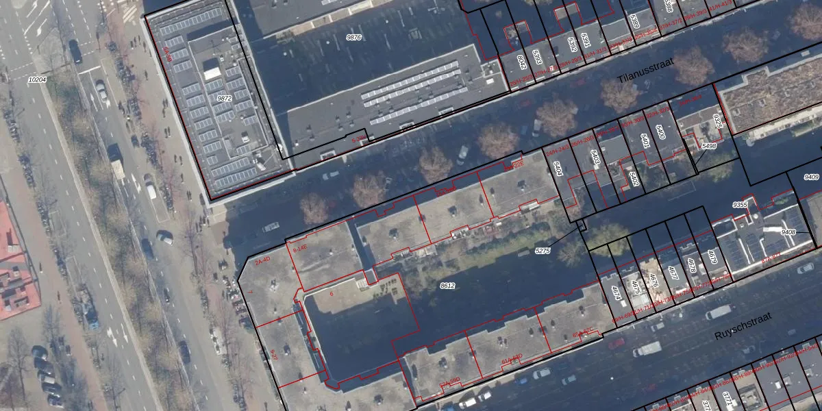 Het perceel waarop het adres ligt is ASD15-S-8612. De afkorting 'ASD15' staat voor kadastrale gemeente Amsterdam. Het perceel is met 4017 m² relatief groot. Het gemiddelde ligt in de kadastrale gemeente Amsterdam op 537,06 m². Het kleinste perceel in de kadastrale gemeente is 0 m² groot. De grootste perceeloppervlakte is 14,5 ha. Er zijn 93 adressen aanwezig op het perceel. De laatste wijziging in het de Basisregistratie Kadaster (BRK) was op 30-11-2006.