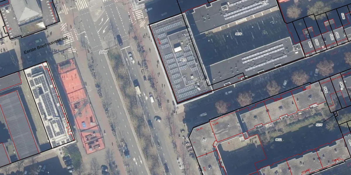 Het perceel waarop het adres ligt is ASD15-S-9872. De afkorting 'ASD15' staat voor kadastrale gemeente Amsterdam. De gemiddelde perceeloppervlakte in de kadastrale gemeente Amsterdam is 537,06 m². Dit perceel is met zijn 1045 m² dus groter dan gemiddeld. Het kleinste perceel in de kadastrale gemeente is 0 m² groot. De grootste perceeloppervlakte is 14,5 ha. Er zijn 49 adressen aanwezig op het perceel. De laatste wijziging in het de Basisregistratie Kadaster (BRK) was op 26-07-2011.