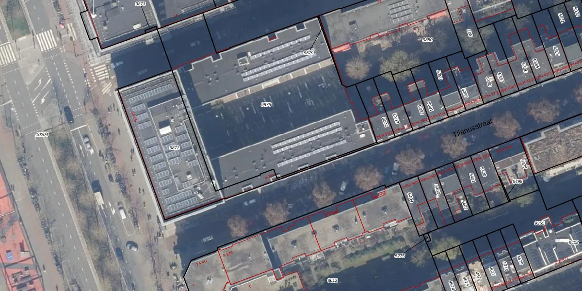 Het perceel waarop het adres ligt is ASD15-S-9876. De afkorting 'ASD15' staat voor kadastrale gemeente Amsterdam. De gemiddelde perceeloppervlakte in de kadastrale gemeente Amsterdam is 537,06 m². Dit perceel is met zijn 2805 m² dus groter dan gemiddeld. Het kleinste perceel in de kadastrale gemeente is 0 m² groot. De grootste perceeloppervlakte is 14,5 ha. Er zijn 109 adressen aanwezig op het perceel. De huidige grenzen van het perceel zijn digitaal in de Basisregistratie Kadaster (BRK) geregistreerd op 26-07-2011.