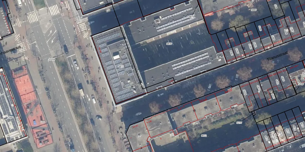 Het perceel waarop het adres ligt is ASD15-S-9876. De afkorting 'ASD15' staat voor kadastrale gemeente Amsterdam. De gemiddelde perceeloppervlakte in de kadastrale gemeente Amsterdam is 537,06 m². Dit perceel is met zijn 2805 m² dus groter dan gemiddeld. Het kleinste perceel in de kadastrale gemeente is 0 m² groot. De grootste perceeloppervlakte is 14,5 ha. Op het perceel zijn 109 adressen aanwezig. In de Basisregistratie Kadaster (BRK) werden de grenzen van het perceel geregistreerd op 26-07-2011.
