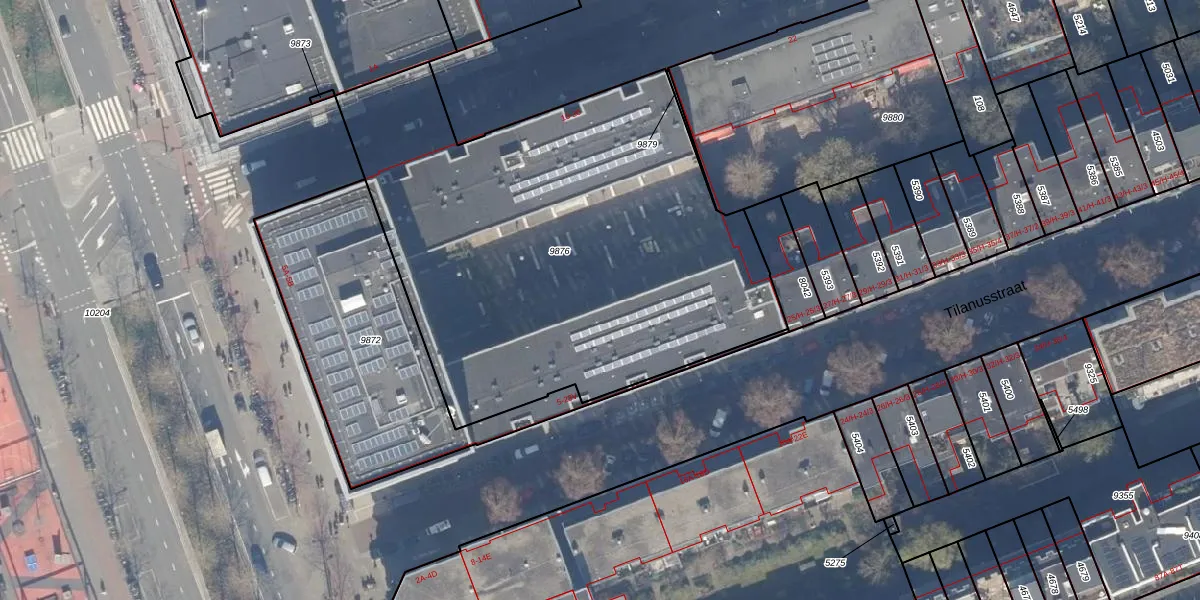 Tilanusstraat 21-F is gelegen op kadastraal perceel ASD15S9876. Deze kadastrale aanduiding is uniek en wordt gebruikt door het Kadaster om eigendomsrechten en andere zakelijke rechten vast te leggen. Het perceel maakt onderdeel uit van de kadastrale gemeente Amsterdam.