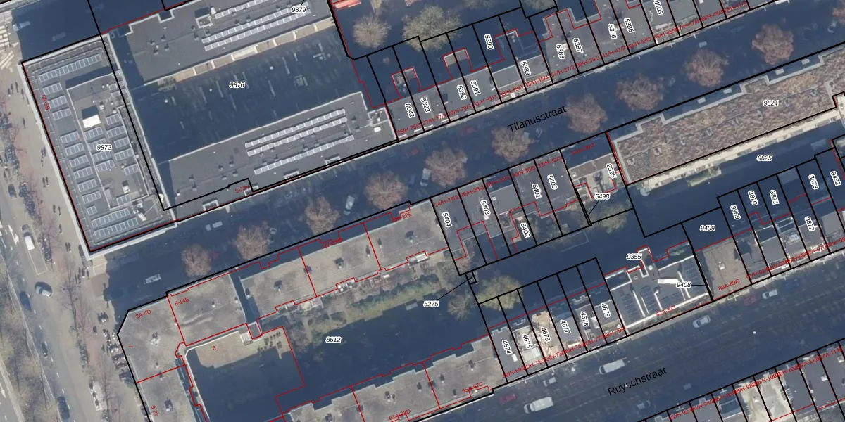 Het perceel waarop Tilanusstraat 22-D staat heeft een oppervlakte van 4017 m². Dit is een zeer groot perceel. De perceeloppervlakte wordt geregistreerd door het Kadaster. Gedetailleerde informatie over de maten van dit perceel kunt u vinden in het rapport Kadastrale kaart met maatvoering van Tilanusstraat 22-D.