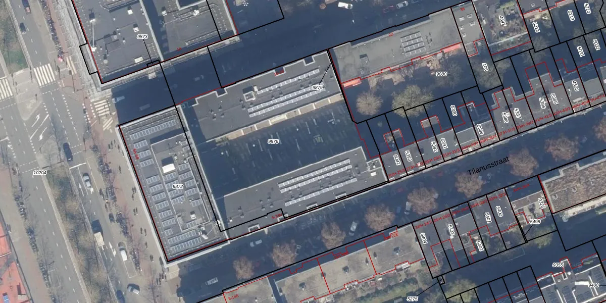 Het perceel waarop het adres ligt is ASD15-S-9876. De afkorting 'ASD15' staat voor kadastrale gemeente Amsterdam. De gemiddelde perceeloppervlakte in de kadastrale gemeente Amsterdam is 537,06 m². Dit perceel is met zijn 2805 m² dus groter dan gemiddeld. De grootste perceeloppervlakte in de kadastrale gemeente is 14,5 ha. De kleinste oppervlakte bedraagt 0 m². Op het perceel liggen in totaal 109 adressen. In de Basisregistratie Kadaster (BRK) werden de grenzen van het perceel geregistreerd op 26-07-2011.