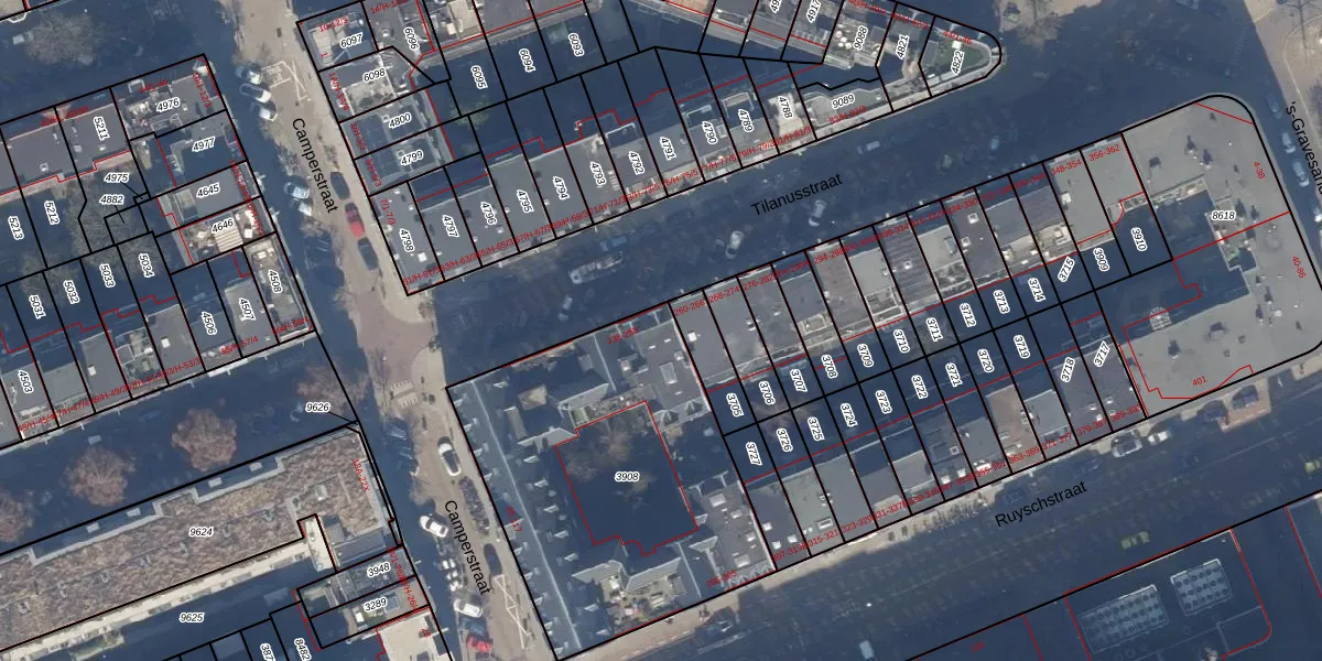 Het perceel waarop Tilanusstraat 252 staat heeft een oppervlakte van 1600 m². Dit is een zeer groot perceel. De perceeloppervlakte wordt geregistreerd door het Kadaster. Gedetailleerde informatie over de maten van dit perceel kunt u vinden in het rapport Kadastrale kaart met maatvoering van Tilanusstraat 252.