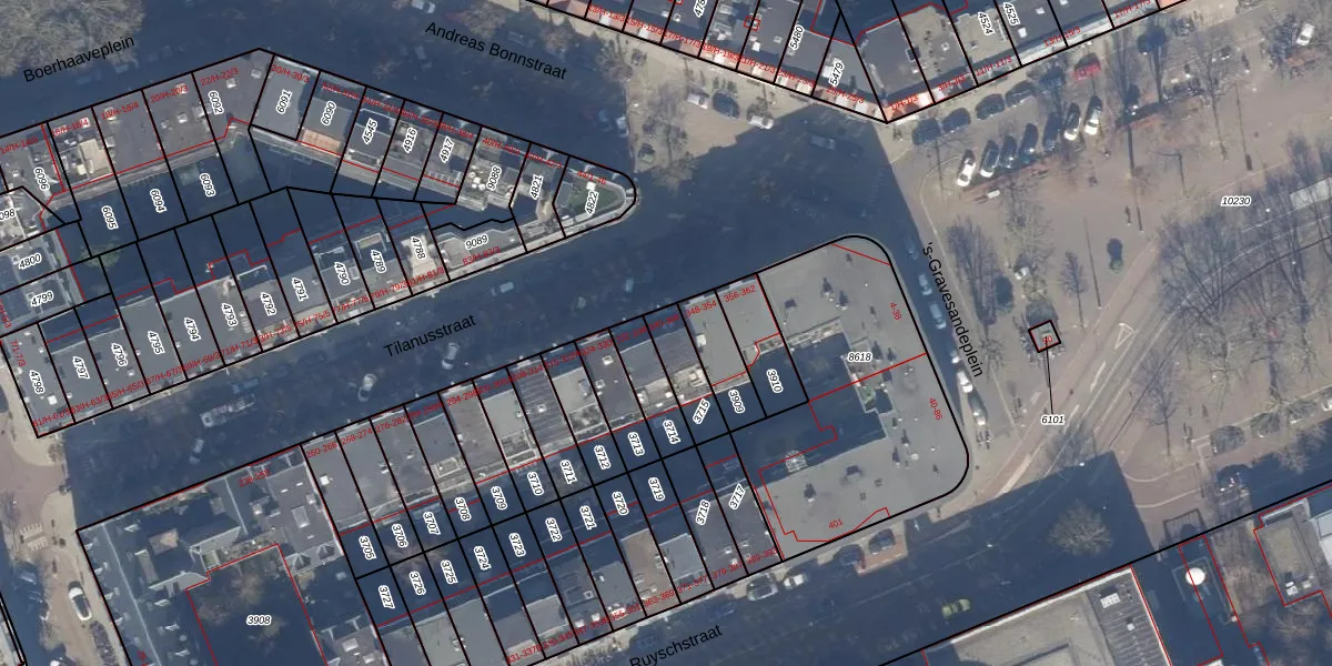 Het adres is gelegen op perceel 3715 in de sectie S en de kadastrale gemeente Amsterdam. De kadastrale aanduiding is aldus ASD15-S-3715. Het perceel is 115 m² groot. Dat is kleiner dan de gemiddelde perceeloppervlakte in Amsterdam, dat op 537,06 m² ligt. Het grootste perceel in de kadastrale gemeente is 14,5 ha. Het kleinste perceel heeft een oppervlakte van 0 m². Op het perceel zijn 5 adressen aanwezig. In de Basisregistratie Kadaster (BRK) werden de grenzen van het perceel geregistreerd op 22-11-2006.