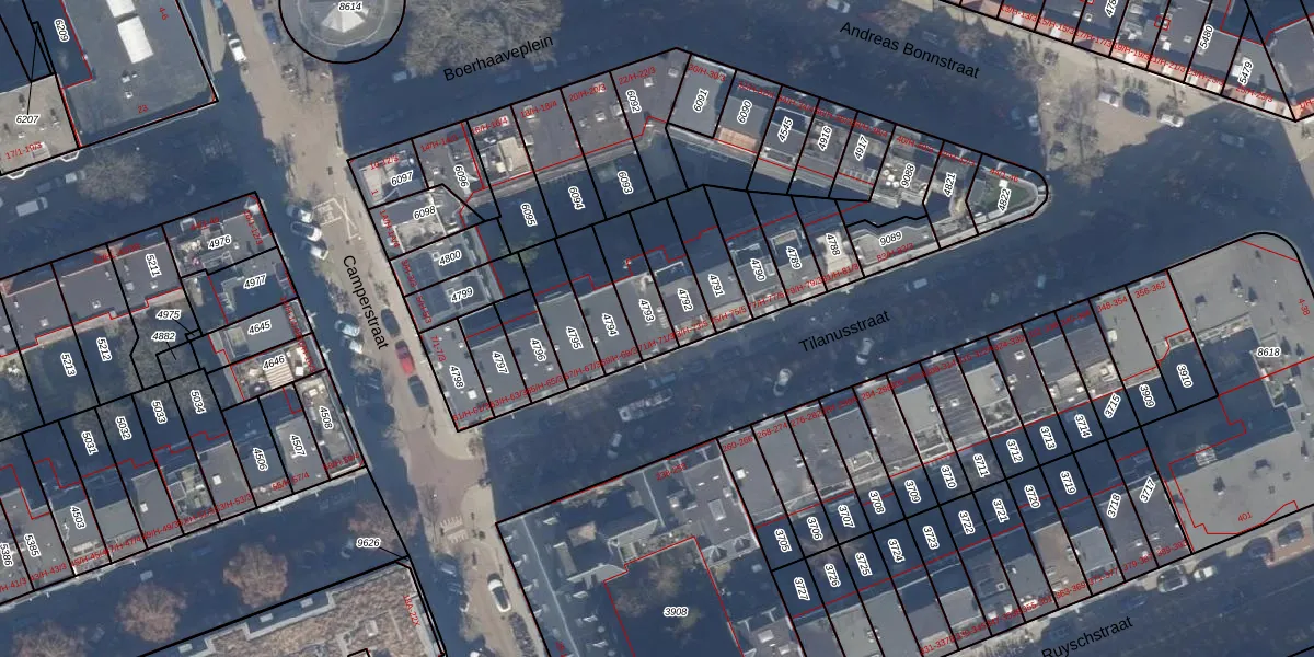 Het perceel waarop het adres ligt is ASD15-S-4793. De afkorting 'ASD15' staat voor kadastrale gemeente Amsterdam. De gemiddelde perceelgrootte in Amsterdam is 537,06 m². Dit perceel is kleiner: de perceeloppervlakte bedraagt 132 m². Het grootste perceel in de kadastrale gemeente is 14,5 ha. Het kleinste perceel heeft een oppervlakte van 0 m². Op het perceel liggen in totaal 4 adressen. De huidige grenzen van het perceel zijn digitaal in de Basisregistratie Kadaster (BRK) geregistreerd op 22-11-2006.