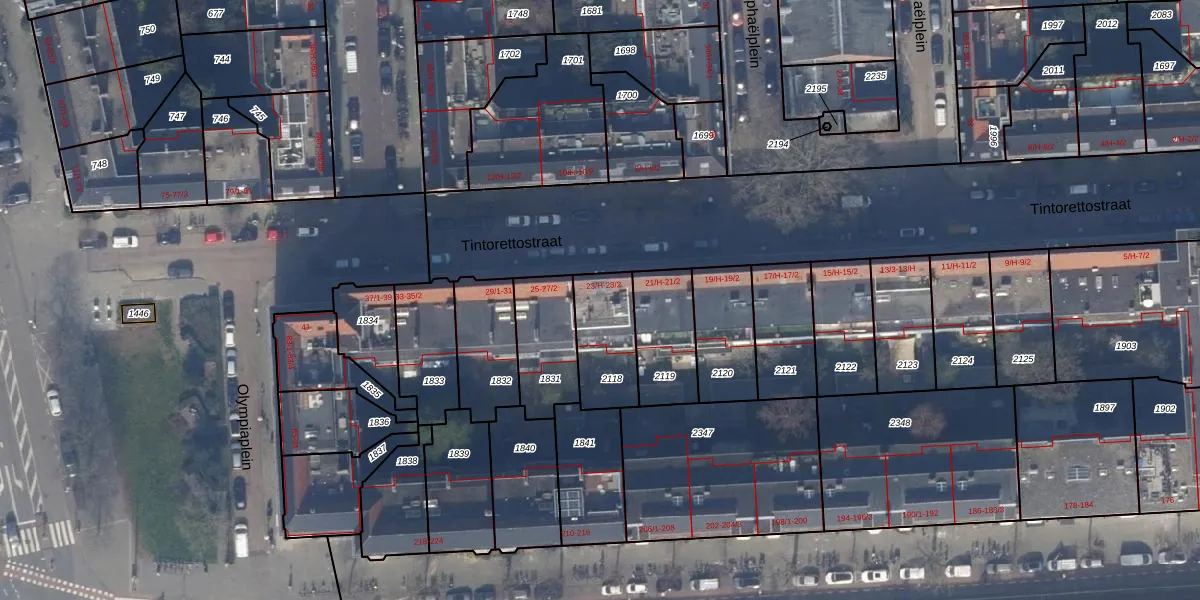 Tintorettostraat 23-1 is gelegen op kadastraal perceel ASD22Z2118. Deze kadastrale aanduiding is uniek en wordt gebruikt door het Kadaster om eigendomsrechten en andere zakelijke rechten vast te leggen. Het perceel maakt onderdeel uit van de kadastrale gemeente Amsterdam.