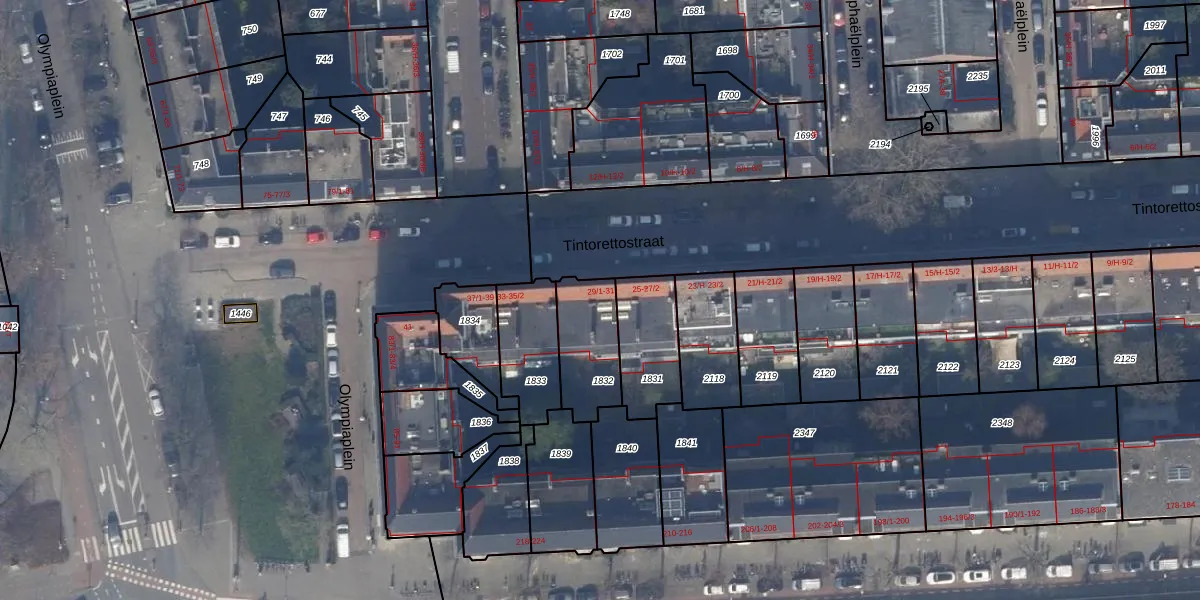 Het perceel waarop het adres ligt is ASD22-Z-1832. De afkorting 'ASD22' staat voor kadastrale gemeente Amsterdam. De gemiddelde perceelgrootte in Amsterdam is 654,25 m². Dit perceel is kleiner: de perceeloppervlakte bedraagt 225 m². Het kleinste perceel in de kadastrale gemeente is 0 m² groot. De grootste perceeloppervlakte is 18,1 ha. Er zijn 3 adressen aanwezig op het perceel. In de Basisregistratie Kadaster (BRK) werden de grenzen van het perceel geregistreerd op 26-10-2006.