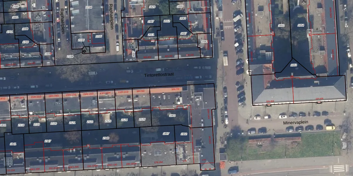 Het perceel waarop Tintorettostraat 5-1 staat heeft een oppervlakte van 834 m². Dit is een groot perceel. De perceeloppervlakte wordt geregistreerd door het Kadaster. Gedetailleerde informatie over de maten van dit perceel kunt u vinden in het rapport Kadastrale kaart met maatvoering van Tintorettostraat 5-1.
