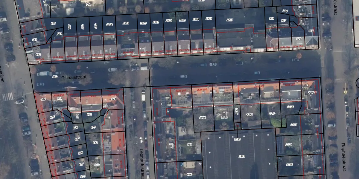 Het perceel waarop Titiaanstraat 27-2 staat heeft een oppervlakte van 1040 m². Dit is een zeer groot perceel. De perceeloppervlakte wordt geregistreerd door het Kadaster. Gedetailleerde informatie over de maten van dit perceel kunt u vinden in het rapport Kadastrale kaart met maatvoering van Titiaanstraat 27-2.