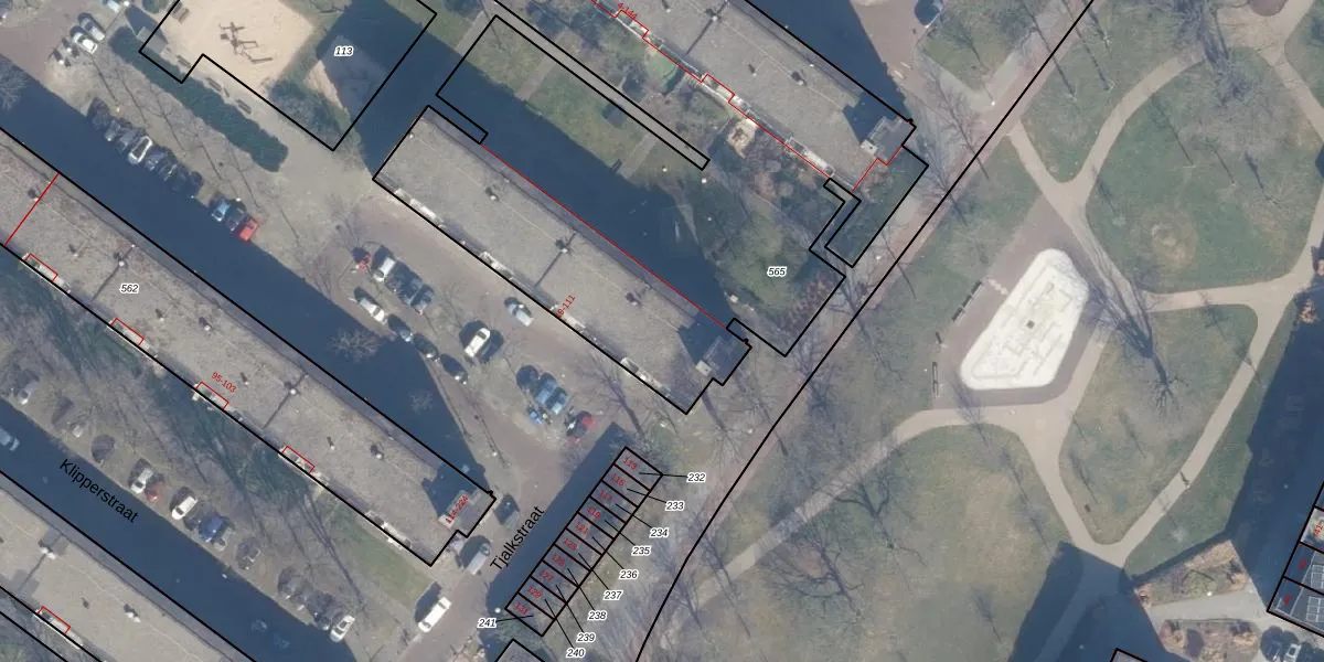 Het perceel waarop Tjalkstraat 79 staat heeft een oppervlakte van 4375 m². Dit is een zeer groot perceel. De perceeloppervlakte wordt geregistreerd door het Kadaster. Gedetailleerde informatie over de maten van dit perceel kunt u vinden in het rapport Kadastrale kaart met maatvoering van Tjalkstraat 79.