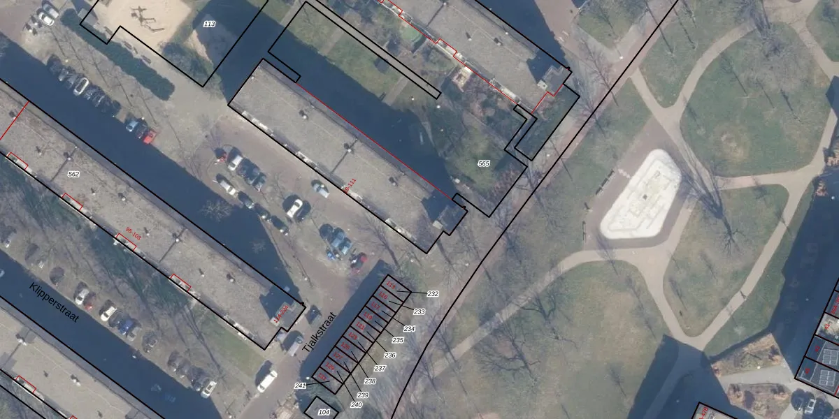 Het perceel waarop Tjalkstraat 95 staat heeft een oppervlakte van 4375 m². Dit is een zeer groot perceel. De perceeloppervlakte wordt geregistreerd door het Kadaster. Gedetailleerde informatie over de maten van dit perceel kunt u vinden in het rapport Kadastrale kaart met maatvoering van Tjalkstraat 95.