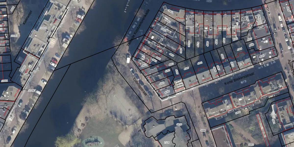Het perceel waarop het adres ligt is ASD16-T-4463. De afkorting 'ASD16' staat voor kadastrale gemeente Amsterdam. De gemiddelde perceelgrootte in Amsterdam is 245,33 m². Dit perceel is kleiner: de perceeloppervlakte bedraagt 117 m². Het grootste perceel in de kadastrale gemeente is 3,3 ha. Het kleinste perceel heeft een oppervlakte van 0 m². Op het perceel zijn 4 adressen aanwezig. De huidige grenzen van het perceel zijn digitaal in de Basisregistratie Kadaster (BRK) geregistreerd op 12-01-2007.