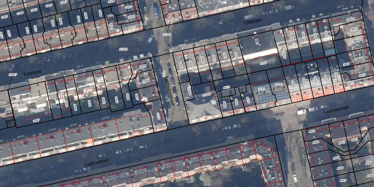 Het perceel waarop Toldwarsstraat 9 staat heeft een oppervlakte van 59 m². Dit is een klein perceel. De perceeloppervlakte wordt geregistreerd door het Kadaster. Gedetailleerde informatie over de maten van dit perceel kunt u vinden in het rapport Kadastrale kaart met maatvoering van Toldwarsstraat 9.