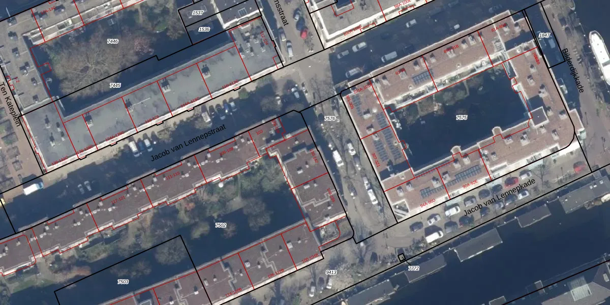 Het perceel waarop het adres ligt is ASD13-Q-7502. De afkorting 'ASD13' staat voor kadastrale gemeente Amsterdam. De oppervlakte van het perceel is 4948 m². Dat is groter dan gemiddeld in Amsterdam, waar de gemiddelde perceeloppervlakte op 393,94 m² ligt. Het kleinste perceel in de kadastrale gemeente is 1 m² groot. De grootste perceeloppervlakte is 6,2 ha. Op het perceel liggen in totaal 88 adressen. De laatste wijziging in het de Basisregistratie Kadaster (BRK) was op 15-08-2008.