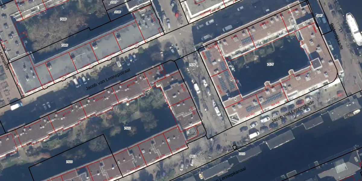 Het perceel waarop het adres ligt is ASD13-Q-7502. De afkorting 'ASD13' staat voor kadastrale gemeente Amsterdam. De oppervlakte van het perceel is 4948 m². Dat is groter dan gemiddeld in Amsterdam, waar de gemiddelde perceeloppervlakte op 393,94 m² ligt. De grootste perceeloppervlakte in de kadastrale gemeente is 6,2 ha. De kleinste oppervlakte bedraagt 1 m². Er zijn 88 adressen aanwezig op het perceel. De laatste wijziging in het de Basisregistratie Kadaster (BRK) was op 15-08-2008.