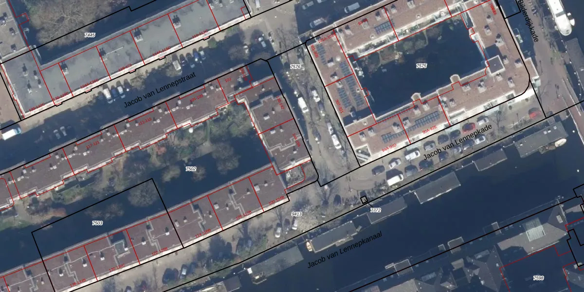 Het perceel waarop het adres ligt is ASD13-Q-7502. De afkorting 'ASD13' staat voor kadastrale gemeente Amsterdam. De oppervlakte van het perceel is 4948 m². Dat is groter dan gemiddeld in Amsterdam, waar de gemiddelde perceeloppervlakte op 393,94 m² ligt. De grootste perceeloppervlakte in de kadastrale gemeente is 6,2 ha. De kleinste oppervlakte bedraagt 1 m². Op het perceel zijn 88 adressen aanwezig. De laatste wijziging in het de Basisregistratie Kadaster (BRK) was op 15-08-2008.