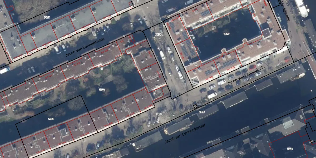 Het perceel waarop het adres ligt is ASD13-Q-7502. De afkorting 'ASD13' staat voor kadastrale gemeente Amsterdam. De oppervlakte van het perceel is 4948 m². Dat is groter dan gemiddeld in Amsterdam, waar de gemiddelde perceeloppervlakte op 393,94 m² ligt. De grootste perceeloppervlakte in de kadastrale gemeente is 6,2 ha. De kleinste oppervlakte bedraagt 1 m². Op het perceel zijn 88 adressen aanwezig. De huidige grenzen van het perceel zijn digitaal in de Basisregistratie Kadaster (BRK) geregistreerd op 15-08-2008.