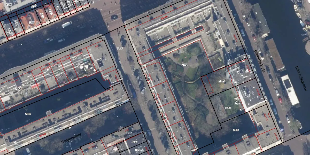 Het perceel waarop het adres ligt is ASD13-Q-7471. De afkorting 'ASD13' staat voor kadastrale gemeente Amsterdam. De oppervlakte van het perceel is 4713 m². Dat is groter dan gemiddeld in Amsterdam, waar de gemiddelde perceeloppervlakte op 393,94 m² ligt. De grootste perceeloppervlakte in de kadastrale gemeente is 6,2 ha. De kleinste oppervlakte bedraagt 1 m². Op het perceel zijn 109 adressen aanwezig. De laatste wijziging in het de Basisregistratie Kadaster (BRK) was op 23-11-2006.