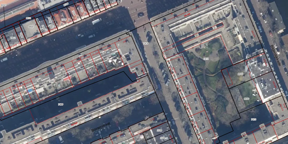Het adres ligt op het perceel ASD13-Q-7488, dat zich in de kadastrale gemeente Amsterdam bevindt. De oppervlakte van het perceel is 2959 m². Dat is groter dan gemiddeld in Amsterdam, waar de gemiddelde perceeloppervlakte op 393,94 m² ligt. De grootste perceeloppervlakte in de kadastrale gemeente is 6,2 ha. De kleinste oppervlakte bedraagt 1 m². Er zijn 91 adressen aanwezig op het perceel. De huidige grenzen van het perceel zijn digitaal in de Basisregistratie Kadaster (BRK) geregistreerd op 23-11-2006.