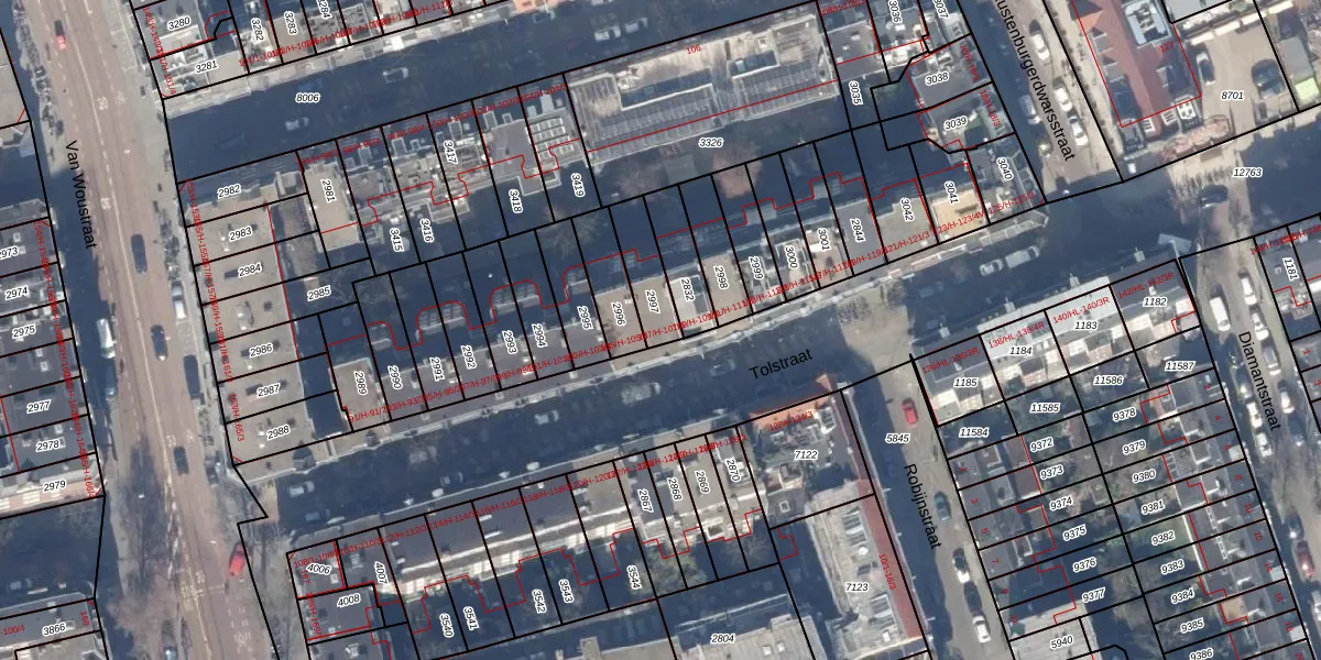 Tolstraat 107-H is gelegen op kadastraal perceel ASD18V2997. Deze kadastrale aanduiding is uniek en wordt gebruikt door het Kadaster om eigendomsrechten en andere zakelijke rechten vast te leggen. Het perceel maakt onderdeel uit van de kadastrale gemeente Amsterdam.