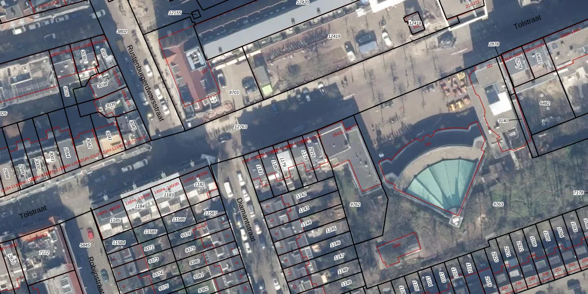 Het perceel waarop Tolstraat 150-2 staat heeft een oppervlakte van 87 m². Dit is een klein perceel. De perceeloppervlakte wordt geregistreerd door het Kadaster. Gedetailleerde informatie over de maten van dit perceel kunt u vinden in het rapport Kadastrale kaart met maatvoering van Tolstraat 150-2.