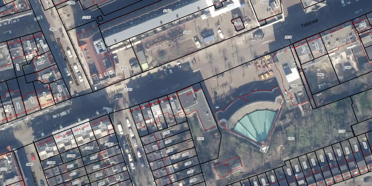 Het perceel waarop Tolstraat 154-2 staat heeft een oppervlakte van 565 m². Dit is een groot perceel. De perceeloppervlakte wordt geregistreerd door het Kadaster. Gedetailleerde informatie over de maten van dit perceel kunt u vinden in het rapport Kadastrale kaart met maatvoering van Tolstraat 154-2.