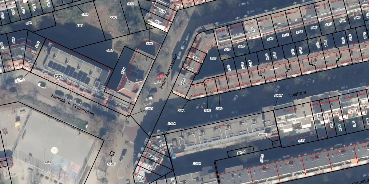 Tolstraat 23-E is gelegen op kadastraal perceel ASD18V3890. Deze kadastrale aanduiding is uniek en wordt gebruikt door het Kadaster om eigendomsrechten en andere zakelijke rechten vast te leggen. Het perceel maakt onderdeel uit van de kadastrale gemeente Amsterdam.
