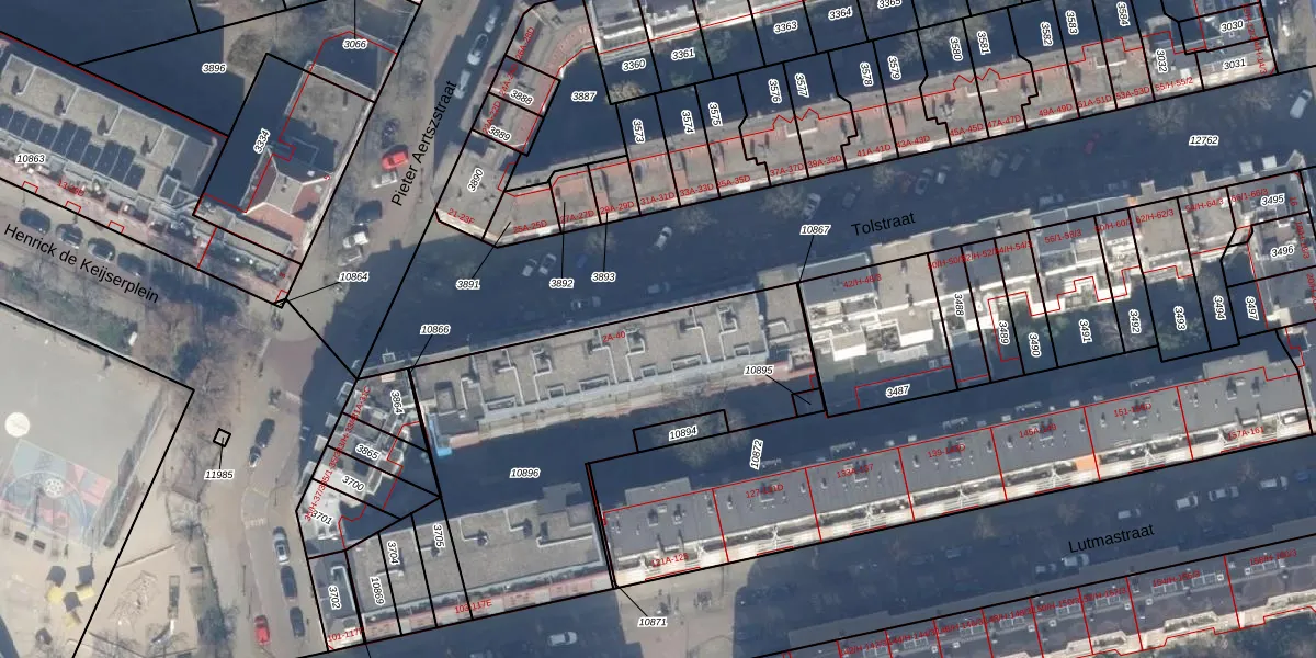 Tolstraat 36 is gelegen op kadastraal perceel ASD18V10896. Deze kadastrale aanduiding is uniek en wordt gebruikt door het Kadaster om eigendomsrechten en andere zakelijke rechten vast te leggen. Het perceel maakt onderdeel uit van de kadastrale gemeente Amsterdam.