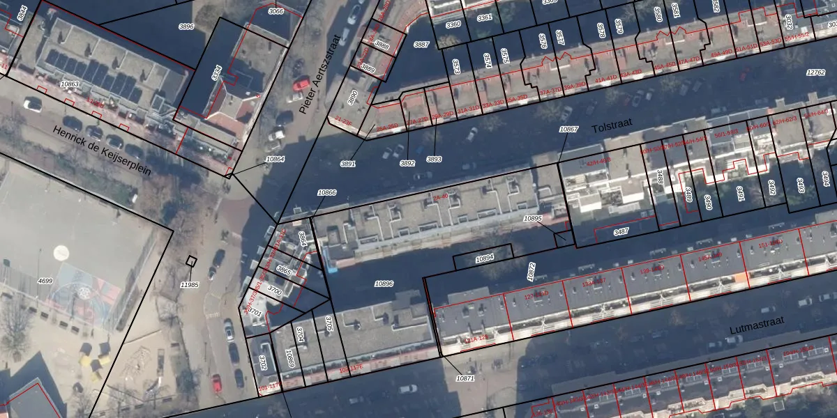 Tolstraat 4-E is gelegen op kadastraal perceel ASD18V10896. Deze kadastrale aanduiding is uniek en wordt gebruikt door het Kadaster om eigendomsrechten en andere zakelijke rechten vast te leggen. Het perceel maakt onderdeel uit van de kadastrale gemeente Amsterdam.