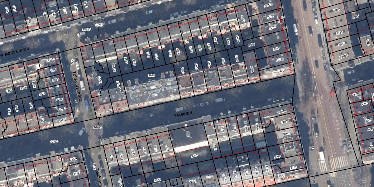 Tolstraat 79-A is gelegen op kadastraal perceel ASD18V2960. Deze kadastrale aanduiding is uniek en wordt gebruikt door het Kadaster om eigendomsrechten en andere zakelijke rechten vast te leggen. Het perceel maakt onderdeel uit van de kadastrale gemeente Amsterdam.