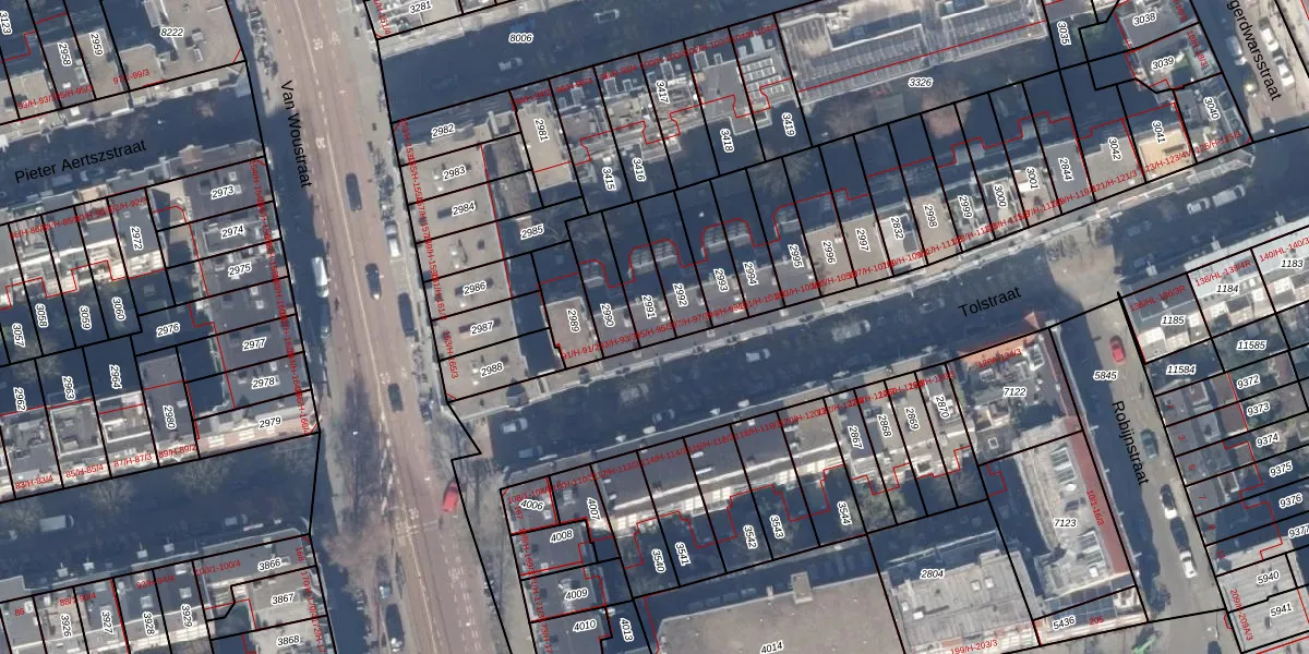 Tolstraat 95-1 is gelegen op kadastraal perceel ASD18V2991. Deze kadastrale aanduiding is uniek en wordt gebruikt door het Kadaster om eigendomsrechten en andere zakelijke rechten vast te leggen. Het perceel maakt onderdeel uit van de kadastrale gemeente Amsterdam.
