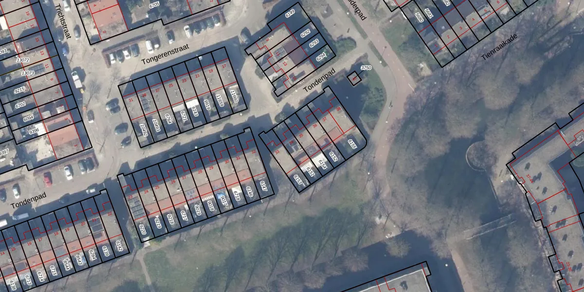 Het perceel waarop Tondenpad 34 staat heeft een oppervlakte van 112 m². Dit is een middelgroot perceel. De perceeloppervlakte wordt geregistreerd door het Kadaster. Gedetailleerde informatie over de maten van dit perceel kunt u vinden in het rapport Kadastrale kaart met maatvoering van Tondenpad 34.