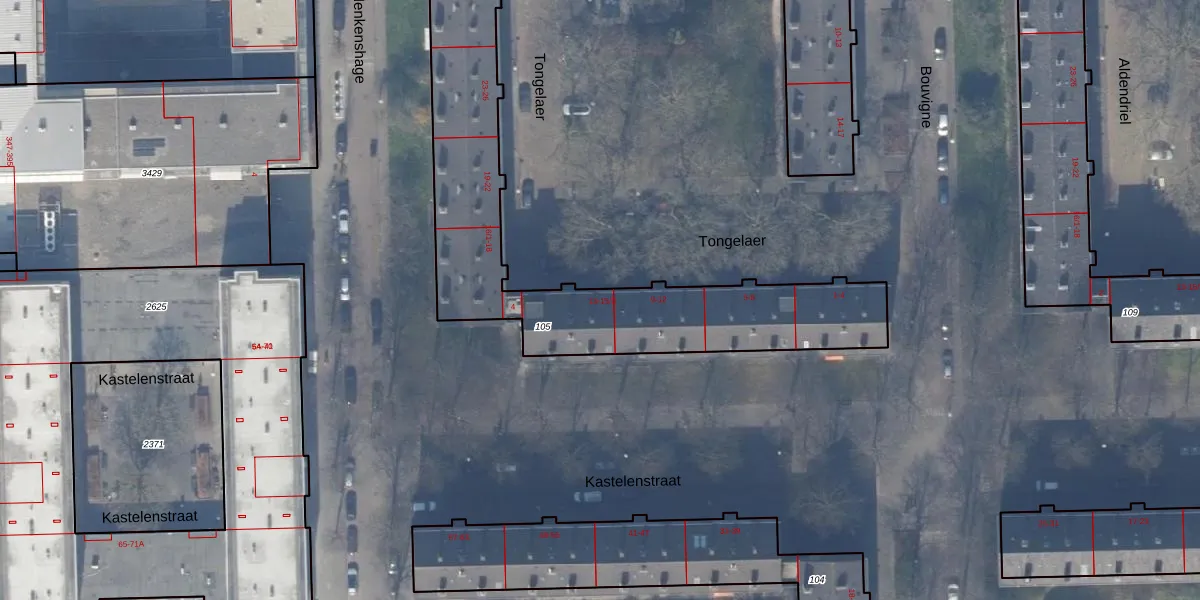 Tongelaer 13 is gelegen op kadastraal perceel ASD30AK105. Deze kadastrale aanduiding is uniek en wordt gebruikt door het Kadaster om eigendomsrechten en andere zakelijke rechten vast te leggen. Het perceel maakt onderdeel uit van de kadastrale gemeente Amsterdam.