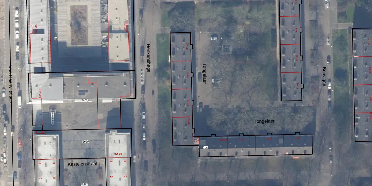 Het perceel waarop Tongelaer 22 staat heeft een oppervlakte van 1361 m². Dit is een zeer groot perceel. De perceeloppervlakte wordt geregistreerd door het Kadaster. Gedetailleerde informatie over de maten van dit perceel kunt u vinden in het rapport Kadastrale kaart met maatvoering van Tongelaer 22.