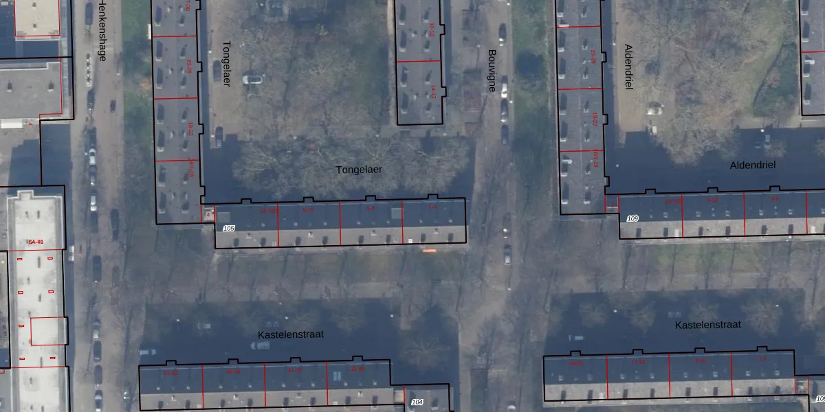 Tongelaer 4 is gelegen op kadastraal perceel ASD30AK105. Deze kadastrale aanduiding is uniek en wordt gebruikt door het Kadaster om eigendomsrechten en andere zakelijke rechten vast te leggen. Het perceel maakt onderdeel uit van de kadastrale gemeente Amsterdam.