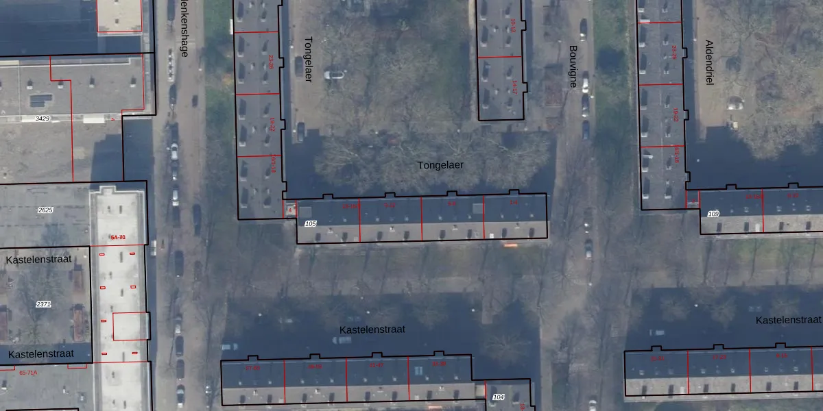 Het perceel waarop Tongelaer 9 staat heeft een oppervlakte van 1361 m². Dit is een zeer groot perceel. De perceeloppervlakte wordt geregistreerd door het Kadaster. Gedetailleerde informatie over de maten van dit perceel kunt u vinden in het rapport Kadastrale kaart met maatvoering van Tongelaer 9.
