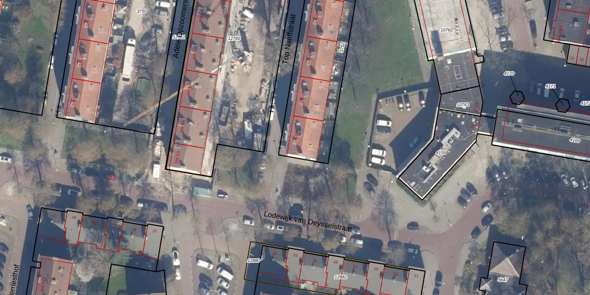 Het perceel waarop Top Naeffstraat 1-H staat heeft een oppervlakte van 1409 m². Dit is een zeer groot perceel. De perceeloppervlakte wordt geregistreerd door het Kadaster. Gedetailleerde informatie over de maten van dit perceel kunt u vinden in het rapport Kadastrale kaart met maatvoering van Top Naeffstraat 1-H.