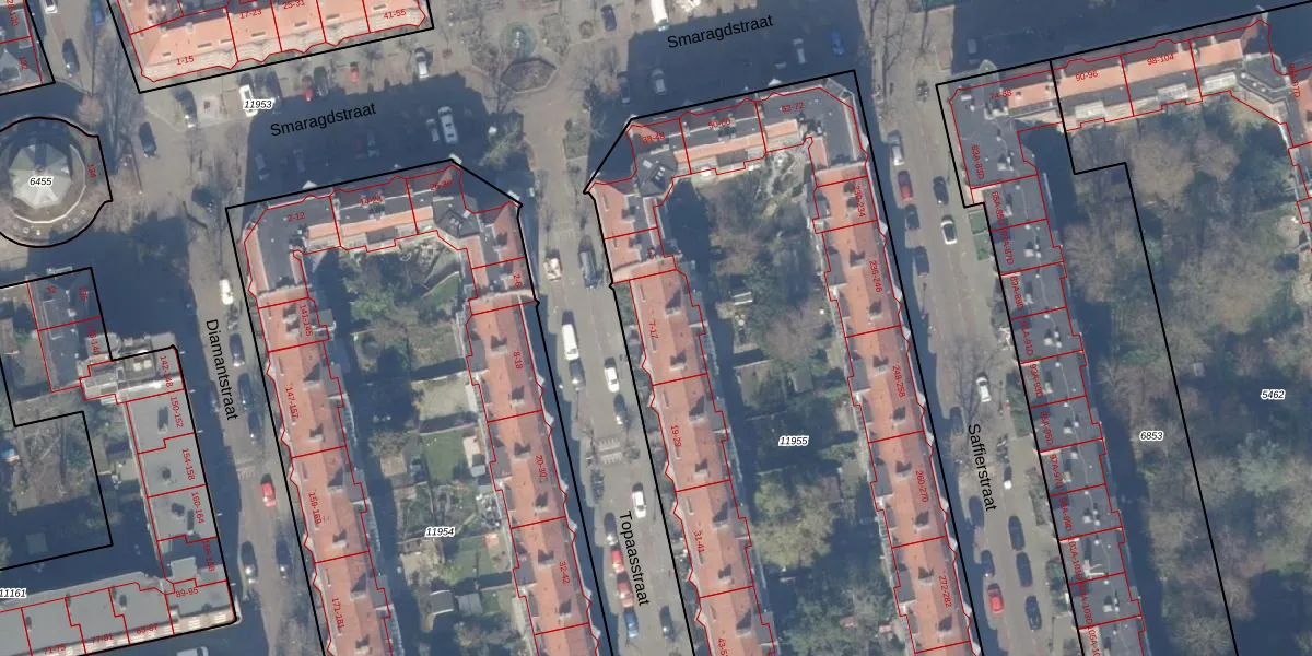 Topaasstraat 11 is gelegen op kadastraal perceel ASD18V11955. Deze kadastrale aanduiding is uniek en wordt gebruikt door het Kadaster om eigendomsrechten en andere zakelijke rechten vast te leggen. Het perceel maakt onderdeel uit van de kadastrale gemeente Amsterdam.