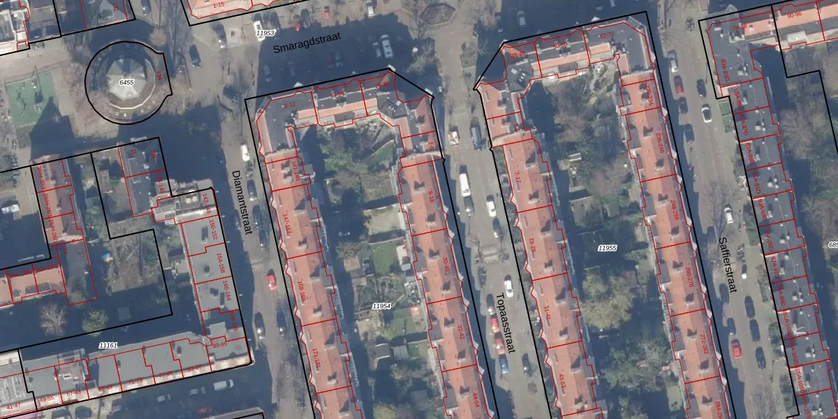 Topaasstraat 16 is gelegen op kadastraal perceel ASD18V11954. Deze kadastrale aanduiding is uniek en wordt gebruikt door het Kadaster om eigendomsrechten en andere zakelijke rechten vast te leggen. Het perceel maakt onderdeel uit van de kadastrale gemeente Amsterdam.