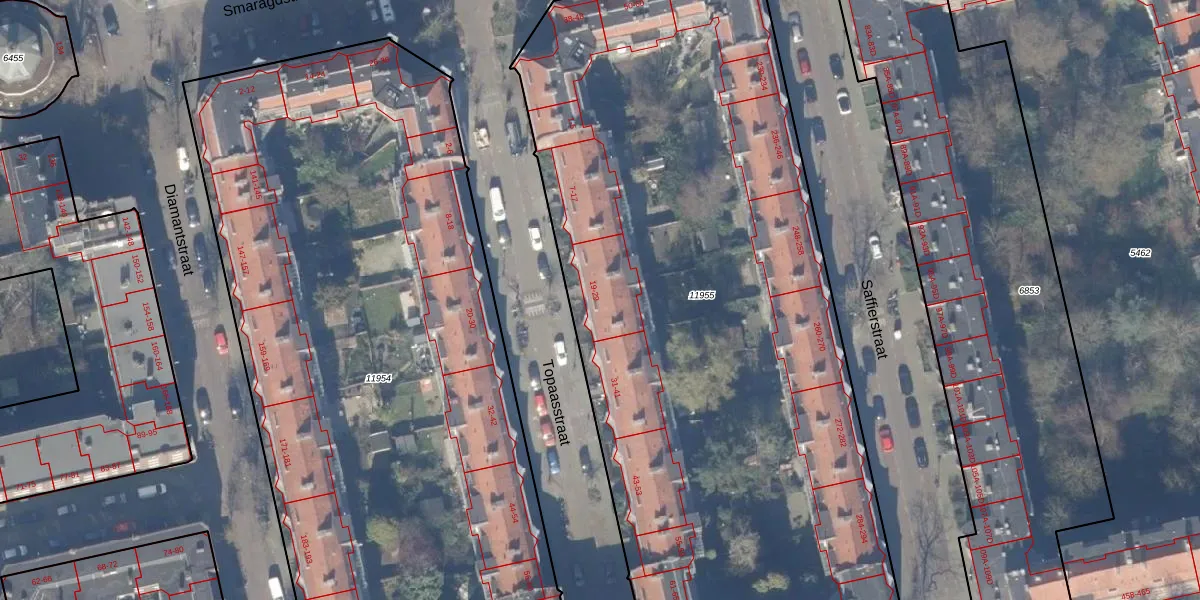 Topaasstraat 25 is gelegen op kadastraal perceel ASD18V11955. Deze kadastrale aanduiding is uniek en wordt gebruikt door het Kadaster om eigendomsrechten en andere zakelijke rechten vast te leggen. Het perceel maakt onderdeel uit van de kadastrale gemeente Amsterdam.