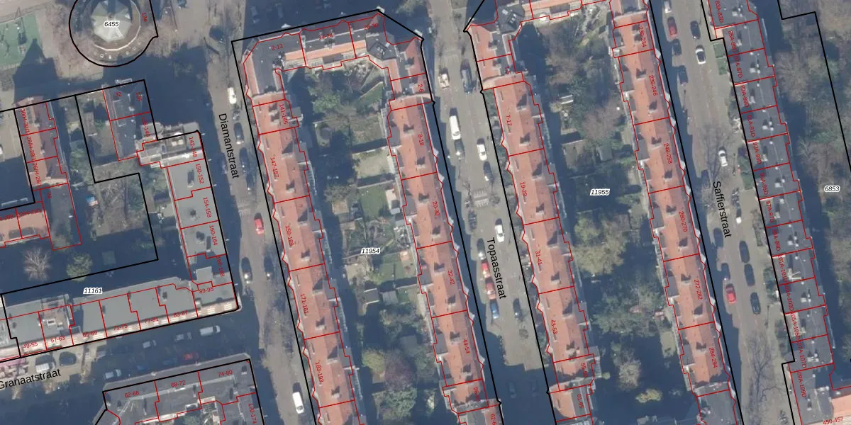Topaasstraat 26 is gelegen op kadastraal perceel ASD18V11954. Deze kadastrale aanduiding is uniek en wordt gebruikt door het Kadaster om eigendomsrechten en andere zakelijke rechten vast te leggen. Het perceel maakt onderdeel uit van de kadastrale gemeente Amsterdam.