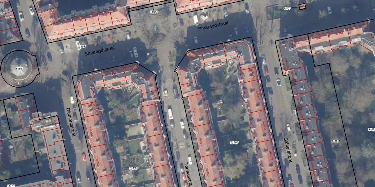 Topaasstraat 5 is gelegen op kadastraal perceel ASD18V11955. Deze kadastrale aanduiding is uniek en wordt gebruikt door het Kadaster om eigendomsrechten en andere zakelijke rechten vast te leggen. Het perceel maakt onderdeel uit van de kadastrale gemeente Amsterdam.