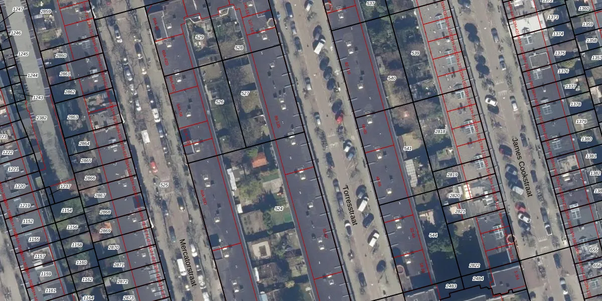 Het perceel waarop Torresstraat 97 staat heeft een oppervlakte van 2400 m². Dit is een zeer groot perceel. De perceeloppervlakte wordt geregistreerd door het Kadaster. Gedetailleerde informatie over de maten van dit perceel kunt u vinden in het rapport Kadastrale kaart met maatvoering van Torresstraat 97.
