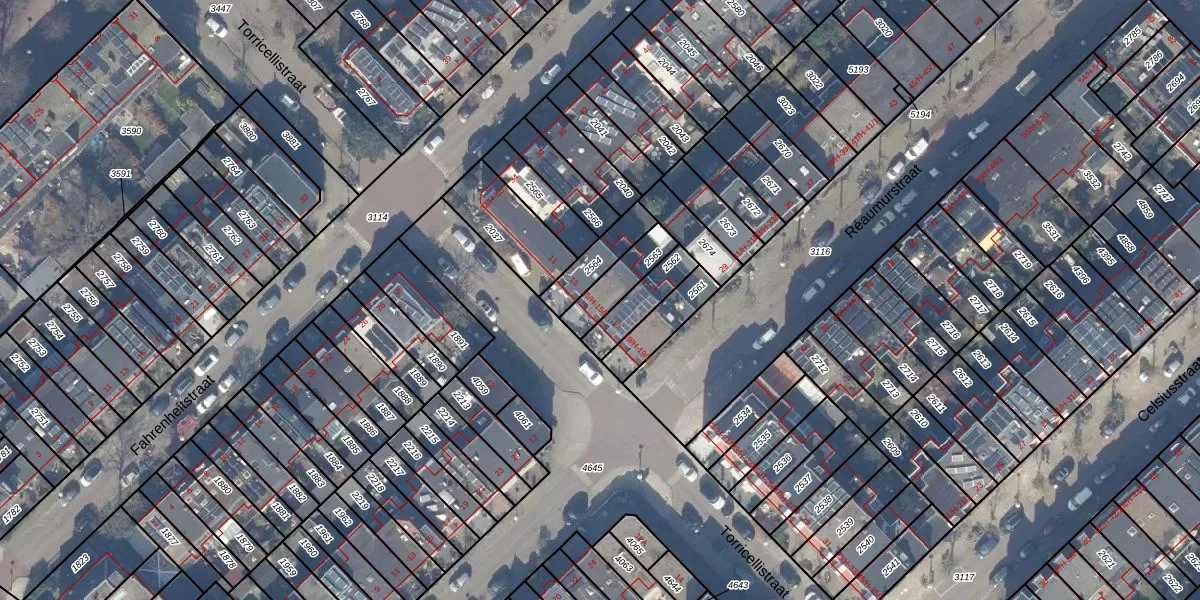 Het perceel waarop Torricellistraat 15-H staat heeft een oppervlakte van 115 m². Dit is een middelgroot perceel. De perceeloppervlakte wordt geregistreerd door het Kadaster. Gedetailleerde informatie over de maten van dit perceel kunt u vinden in het rapport Kadastrale kaart met maatvoering van Torricellistraat 15-H.