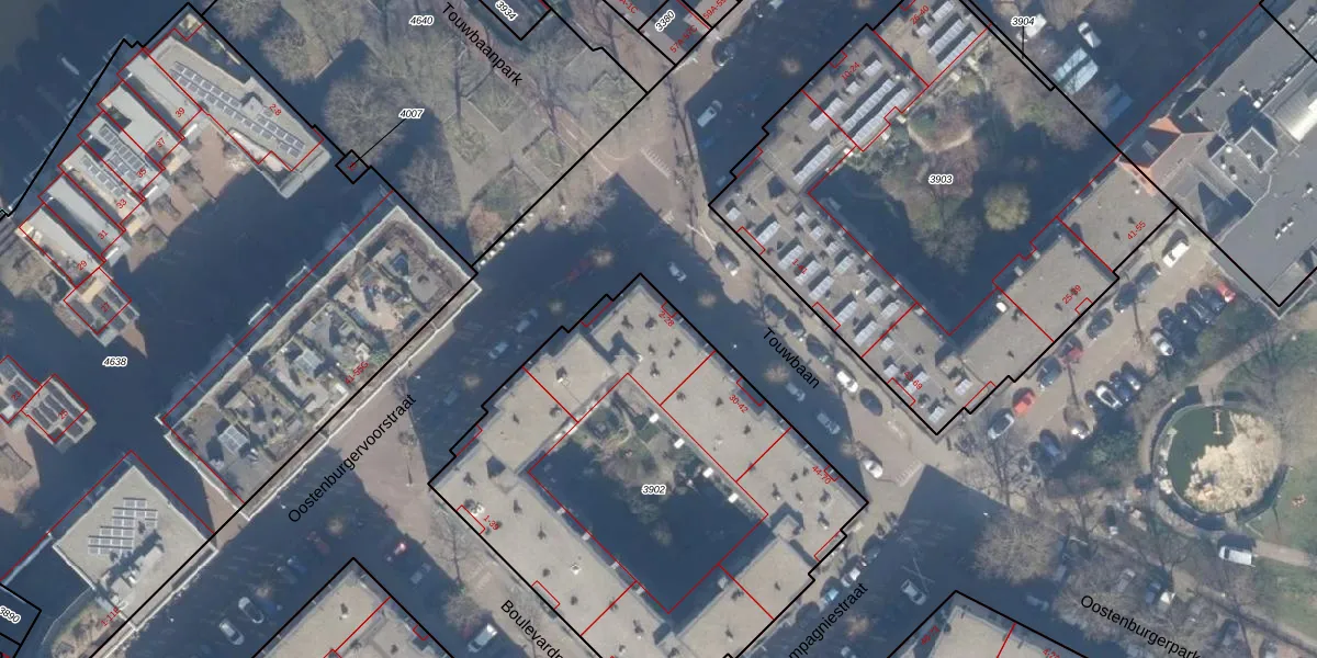 Het adres is gelegen op perceel 3902 in de sectie N en de kadastrale gemeente Amsterdam. De kadastrale aanduiding is aldus ASD10-N-3902. Het perceel is met 2372 m² relatief groot. Het gemiddelde ligt in de kadastrale gemeente Amsterdam op 1949,06 m². Het grootste perceel in de kadastrale gemeente is 17,2 ha. Het kleinste perceel heeft een oppervlakte van 0 m². Op het perceel liggen in totaal 71 adressen. De laatste wijziging in het de Basisregistratie Kadaster (BRK) was op 30-11-2006.