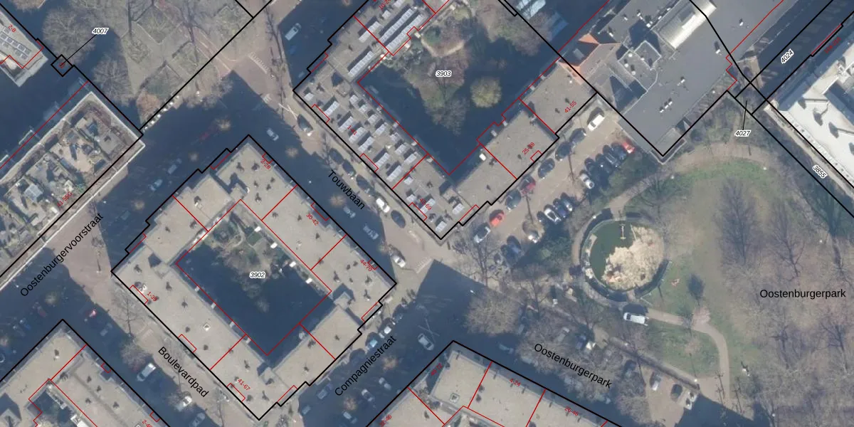 Het adres is gelegen op perceel 3903 in de sectie N en de kadastrale gemeente Amsterdam. De kadastrale aanduiding is aldus ASD10-N-3903. Het perceel is met 2616 m² relatief groot. Het gemiddelde ligt in de kadastrale gemeente Amsterdam op 1949,06 m². Het kleinste perceel in de kadastrale gemeente is 0 m² groot. De grootste perceeloppervlakte is 17,2 ha. Op het perceel liggen in totaal 66 adressen. In de Basisregistratie Kadaster (BRK) werden de grenzen van het perceel geregistreerd op 14-09-2009.